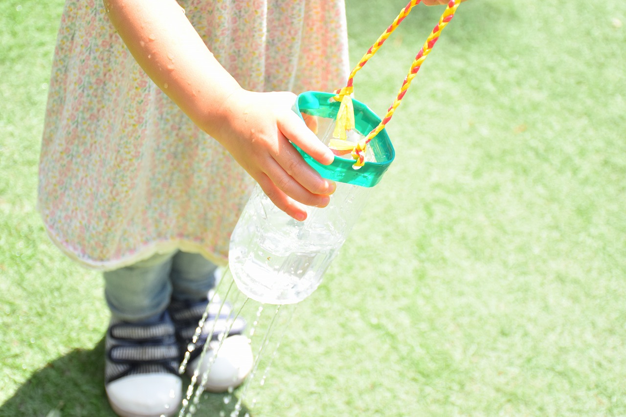 子どもたちは、水という素材を目や耳、皮膚などの五感を通して理解をしているようです。水あそびをすることで水を知るための『体験』になっています。水のひんやりとした感触に気持ち良いと感じたり、しずくが光に反射してキラキラ輝く不思議や美しさを感じたり・・・たくさんの感覚を磨いてくれる水あそびは子どもたちにとって、とても大切な遊びの一つなのです。