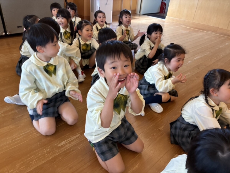 さて、幼稚園ではクラス、学年でフルーツバスケットやボール運び競走などの集団遊びを行っています。