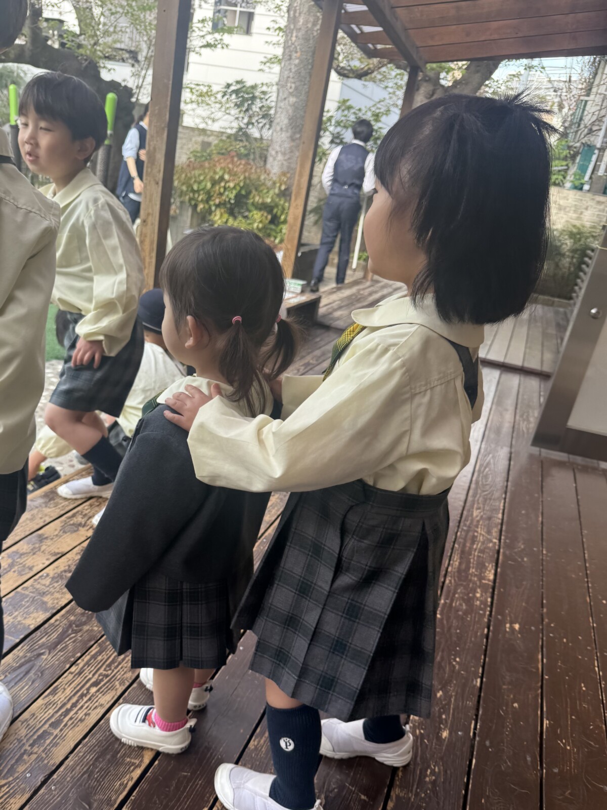 年中になった今では最年少さんが気になり、手を繋いでくれたり、どこへ行くにも気になってついて行き成長を感じております