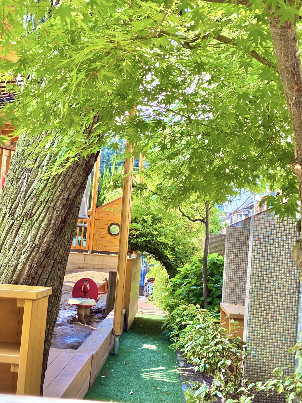 こちらは最年少、年少クラスの棟の1階です。開放感もあり、とても綺麗な園舎です!