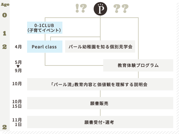 パール幼稚園では、未就園児クラス各種へのご入会、パール・ナーサリー・スクール(企業主導型保育園)への入園、幼稚園への入園をご検討される方向けに、一度幼稚園に足を運んでいただき、園の雰囲気や、方針などを是非体験していただきたいと考えています。お子様の年齢に応じて、お申込み下さい。